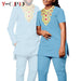 Bazin Riche Couple Outfit – Women’s Jacquard Top & Pants Set with Matching Men’s Kaftan Party Wear