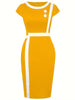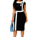 Crafted from a high-quality, stretchy blend of materials, the dress hugs your curves comfortably while offering all-day ease. The O-neckline and short sleeves add a classic touch, making it perfect for professional environments, while the contrast patchwork design adds a fashionable edge suitable for dinners, networking events, or evening parties.